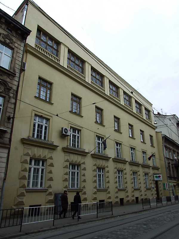 Телефонна станція (№ 26)Розмір зображення: 600:800 піксел 8 квітня 2012 р. Фото М.І.Жарких. Будинок (вул.Дорошенка, 26) споруджено в 1926 р. (архіт. Є.Червінський). Тут міститься телефонна станція. |