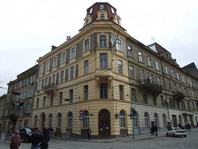 2012 р. Загальний виглядРозмір зображення: 800:600 піксел 8 квітня 2012 р. Фото М.І.Жарких. Ліворуч – вул. П. Дорошенка, праворуч – вул. Словацького. |
