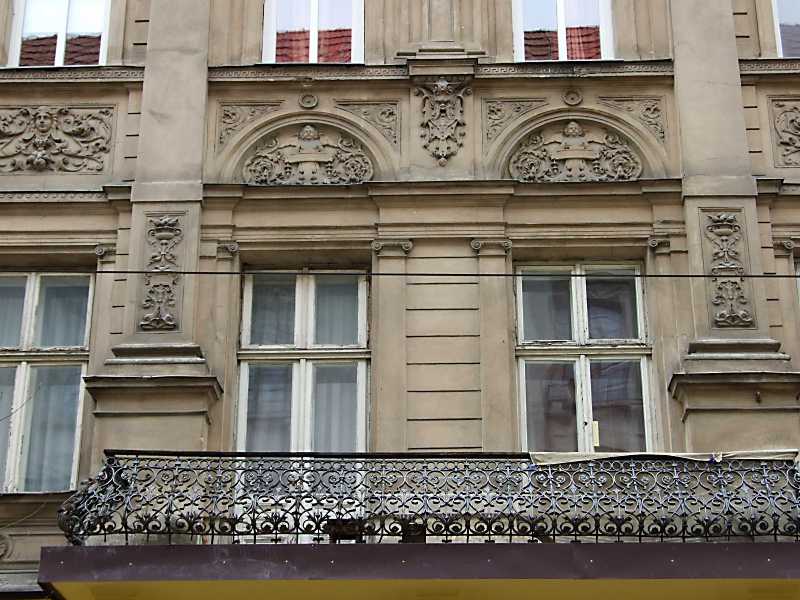 2012 р. Балкон 2-го поверху Розмір зображення: 800:600 піксел 8 квітня 2012 р. Фото М.І.Жарких. Вкладені елементи Рельєфний тимпан