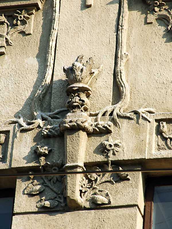 Сецесійний рельєф 2-го поверху Розмір зображення: 600:800 піксел 19 квітня 2013 р. Фото М.І.Жарких. Попередня сторінка | Вище | Наступна сторінка