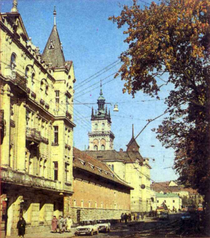 1989 р. Перспектива з боку вул.ВаловоїРозмір зображення: 672:764 піксел Джерело: Львов: атлас туриста. – М.: 1989 г. |