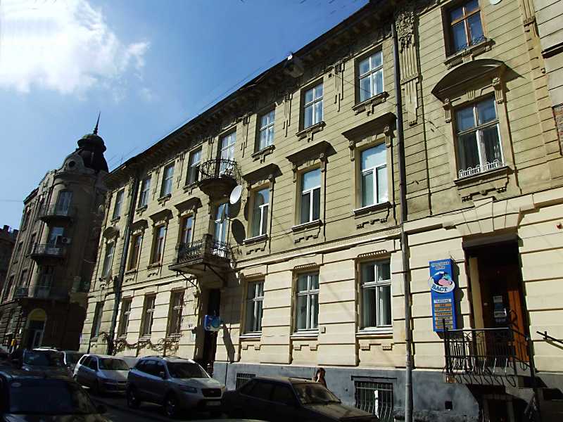 Будинок (№ 2)Розмір зображення: 800:600 піксел Загальний вигляд з боку вул. Поповича. 16 квітня 2013 р. Фото М.І.Жарких. |