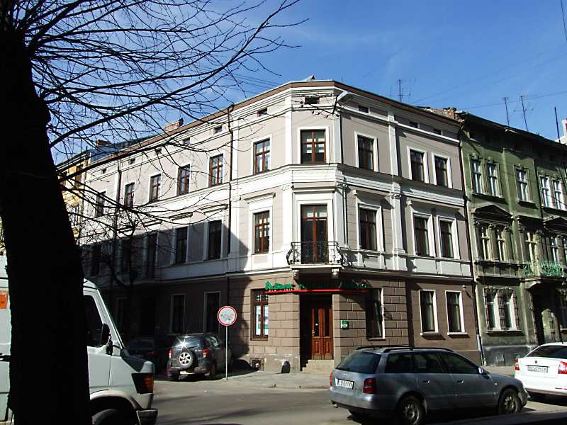 Житловий будинок (№ 2)Розмір зображення: 800:600 піксел Ліворуч – вулиця Романчука, праворуч – вулиця К. Левицького. 16 квітня 2013 р. Фото М.І.Жарких. |