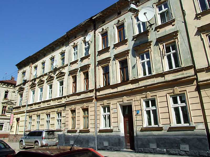 2013 р. Будинки по вул. Сковороди 15 (ліворуч) та Некрасова 23 (праворуч)Розмір зображення: 800:600 піксел 19 квітня 2013 р. Фото М.І.Жарких. |