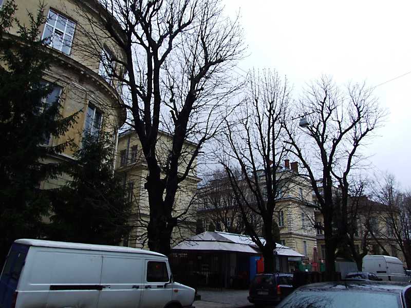 2012 р. Загальний виглядРозмір зображення: 800:600 піксел 7 квітня 2012 р. Фото М.І.Жарких. Ліворуч – фрагмент лівого флігеля, праворуч – правий флігель. |