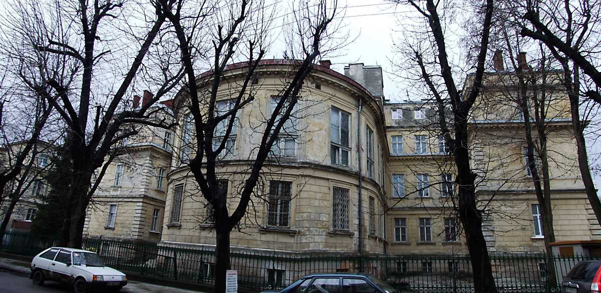 2012 р. Головний фасад Розмір зображення: 1200:585 піксел 7 квітня 2012 р. Фото М.І.Жарких. Вкладені елементи Ліва частина Права частина
