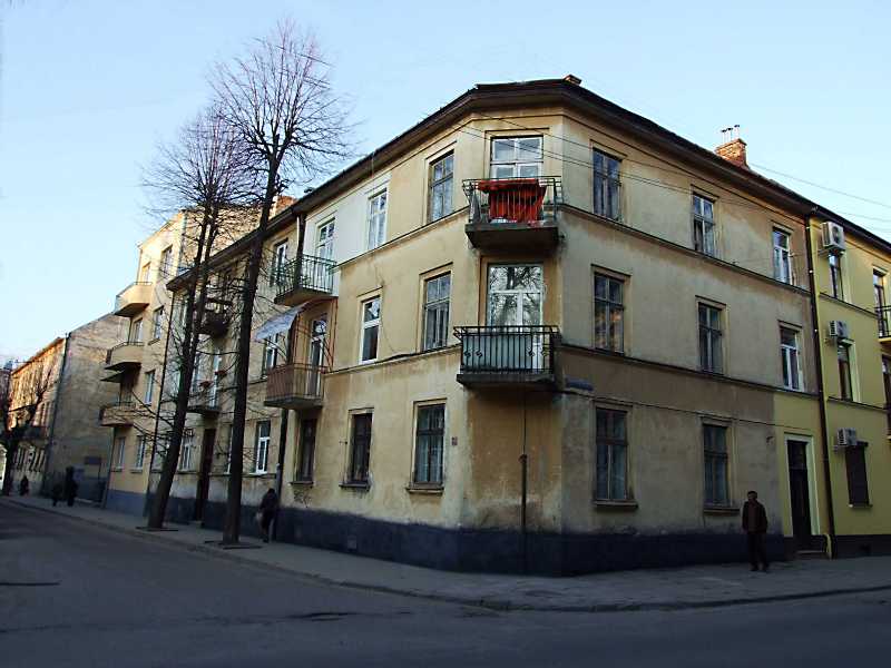 Житловий будинок (№ 5а)Розмір зображення: 800:600 піксел Ліворуч – вулиця Кармелюка, праворуч – вулиця Некрасова. 16 квітня 2013 р. Фото М.І.Жарких. |