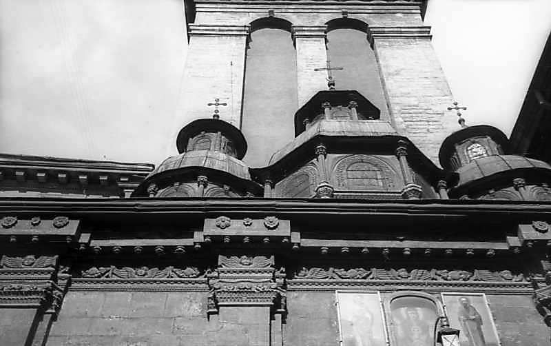 1977 р. Верхи каплиці. Вигляд із заходуРозмір зображення: 800:502 піксел 1977 р. 16 липня. Фото М.І.Жарких. Негатека, № A321-17. |