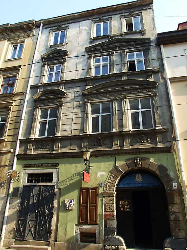2013 р. Головний фасад Розмір зображення: 600:800 піксел 19 квітня 2013 р. Фото М.І.Жарких. Вкладені елементи Вікно 4-го поверху Вікна 3-го поверху Вікна 2-го поверху Майолікова рельєфна прикраса Вхід