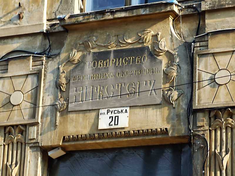 Дошка з написом «Товариство взаємних обезпечень Дністер»