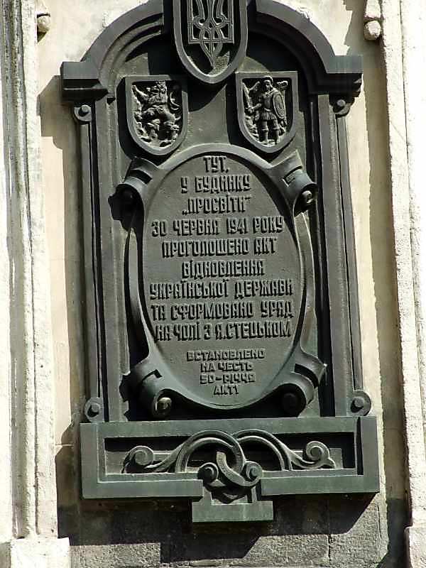 Меморіальна дошка відновленню Української держави 30.06.1941 р.