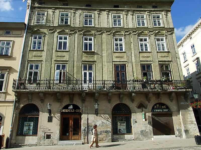 В 1711 р. тут була аптека Золоторовичів. Наріжна кам’яниця мала назву “Під оленем”, від неї й вулиця Друкарська в 17 ст. завлась “Дорога за оленем”.