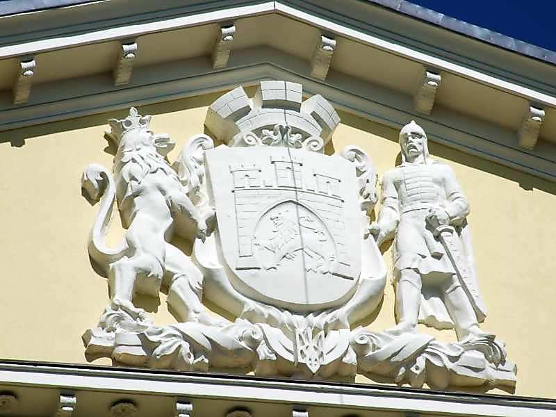 Тимпан фронтонуРозмір зображення: 800:600 піксел 14 вересня 2007 р. Фото М.І.Жарких. Великий герб Львова встановлено в 1994 р. |