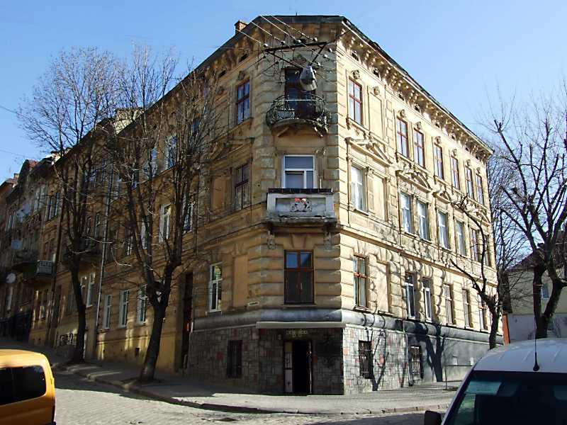 Житловий будинок (№ 2)Розмір зображення: 800:600 піксел Ліворуч – вулиця Садовського, праворуч – вулиця Солодова. 18 квітня 2013 р. Фото М.І.Жарких. |