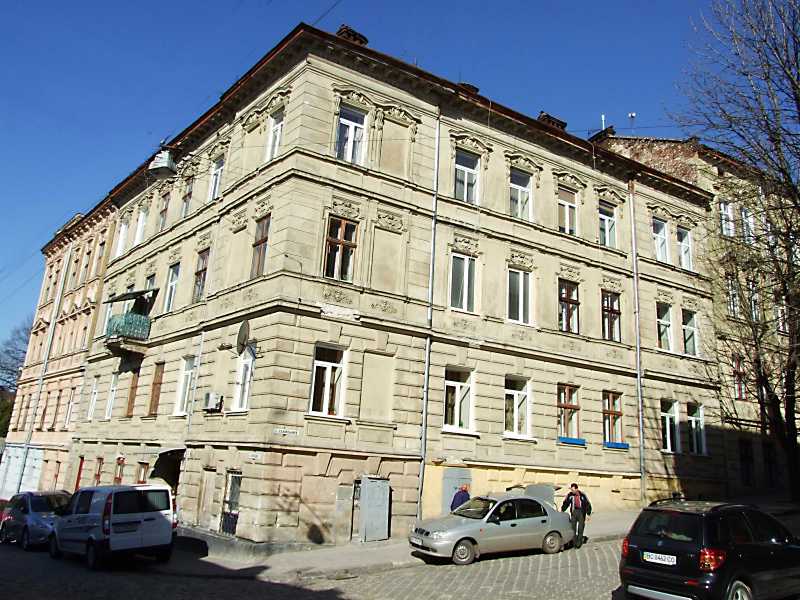 2013 р. Загальний виглядРозмір зображення: 800:600 піксел Ліворуч – вулиця Солодова, праворуч – вулиця Садовського. 18 квітня 2013 р. Фото М.І.Жарких. |