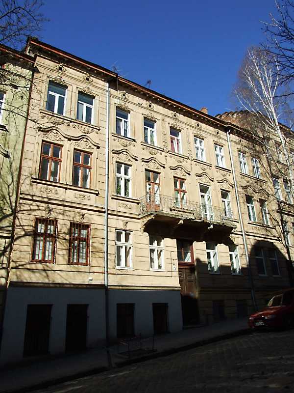 Житловий будинок (№ 5) Розмір зображення: 600:800 піксел 18 квітня 2013 р. Фото М.І.Жарких. Вкладені елементи 2013 р. Вікно 3-го поверху 2013 р. Вікно 2-го поверху 2013 р. Загальний вигляд