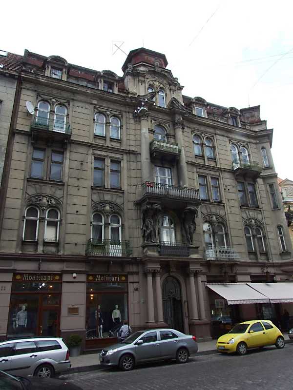 2012 р. Загальний вигляд Розмір зображення: 600:800 піксел 4 квітня 2012 р. Фото М.І.Жарких. Вкладені елементи Фрагмент 3-4-го поверхів Балкон 3-го поверху (+) Вікна 2-го поверху Вхід