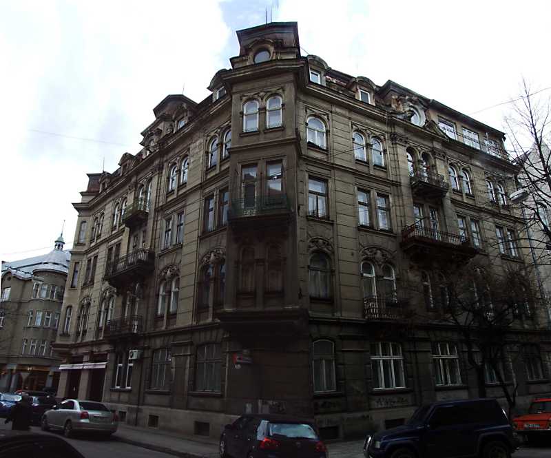 2012 р. Загальний вигляд з боку вул. Стецька Розмір зображення: 800:665 піксел 4 квітня 2012 р. Фото М.І.Жарких. Вкладені елементи Ліва частина Права частина