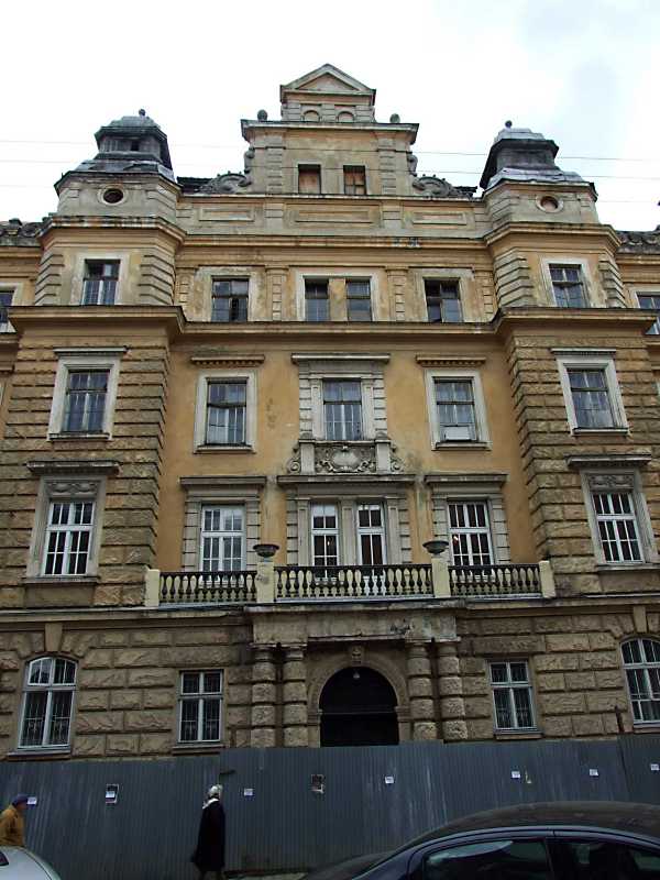 Існуючий будинок (вул.Саксаганського, 13) споруджено в 1913 – 1921 рр. (архіт.фірма М.Уляма) для Галицької фінансової прокуратури та інспекції армії. Давніше він мав адресу Зиблікевича, 10 (по сучасній вул. І.Франка).