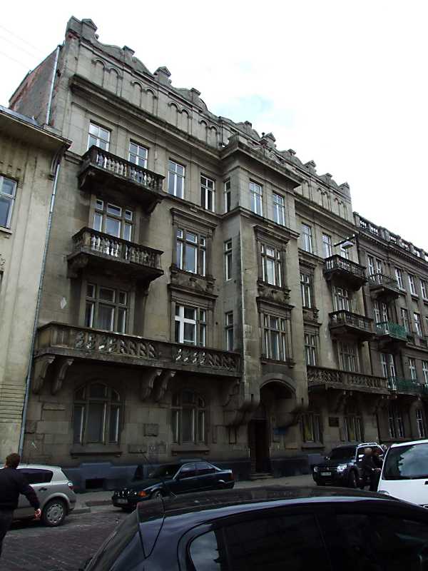 Будинок (вул.Саксаганського, 3) споруджено в 1911 р. (архіт. М.Лужецький) у ренесансно-класичному стилі.
