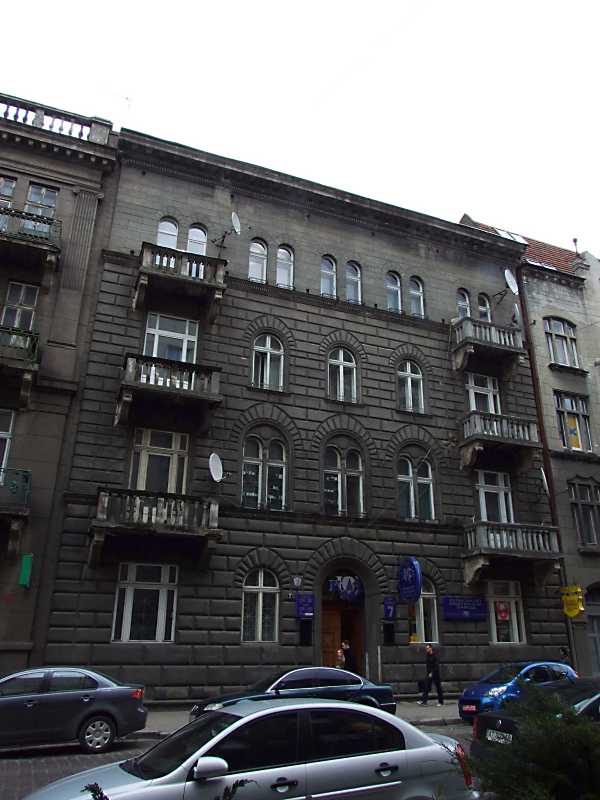 Будинок (вул.Саксаганського, 7) соруджено в 1911 р. (архіт. М.Лужецький) у ренесансно-класичному стилі.