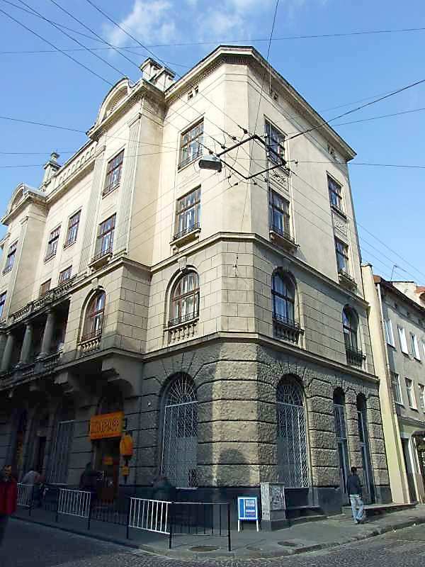 Будинок (№ 13)Розмір зображення: 600:800 піксел У житловому будинку № 13 від радянських часів працював великий гастроном, тепер тут – гриль-бар “Старий Львів” і магазин продуктів “Жираф”. Ілько Лемко Джерело: “”, 19 січня 2007 року, № 7 (77) |