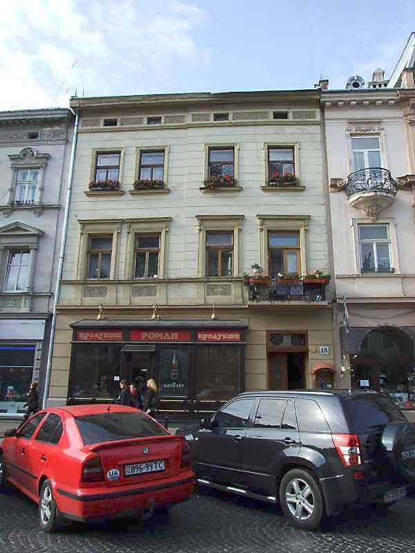 У будинку № 18 за польських часів містилося фотоательє Лісса, за радянських – магазин “Ковбасні вироби”, зараз тут продуктова крамниця “Роман”.