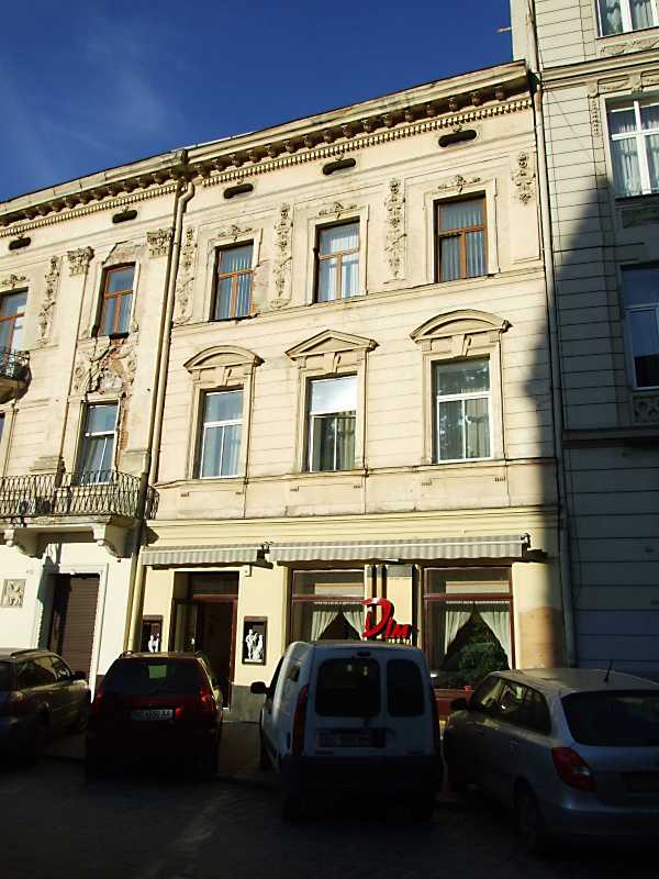 2013 р. Фрагмент головного фасаду Розмір зображення: 600:800 піксел 18 квітня 2013 р. Фото М.І.Жарких. Вкладені елементи Вікно 3-го поверху