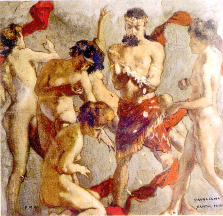 Ф. Вигживальський. Ескіз панно “Перемінний капітал” дня Торгово-промислової палати. 1908 р., картон, олія, гуаш, пастель. Львівська галерея мистецтв.