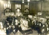 На першому поверсі Торгово-промислової палати Захаревич розташував великий зал біржі. У вітражах і стінних оздобах домінує виразна сецесійна стилізація флоральних мотивів.