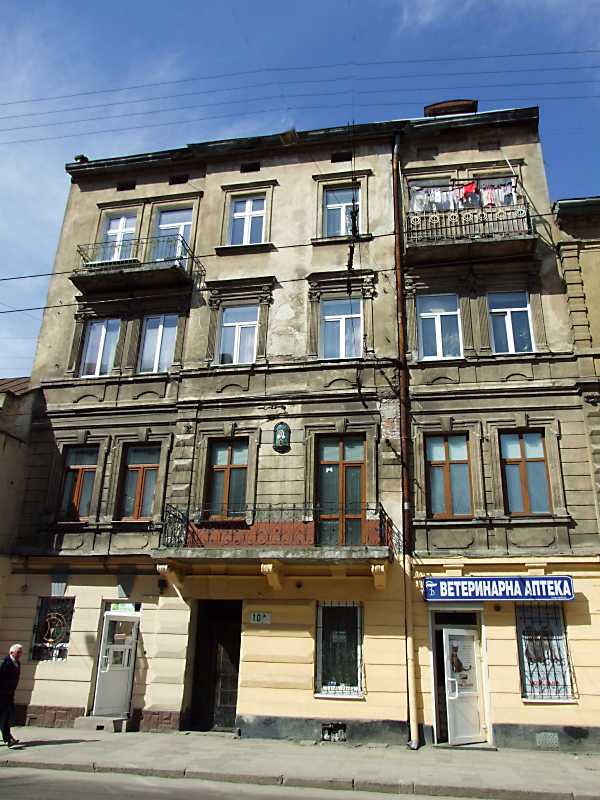 Житловий будинок (№ 10а) Розмір зображення: 600:800 піксел 16 квітня 2013 р. Фото М.І.Жарких. Вкладені елементи 2013 р. Вітраж богородиці