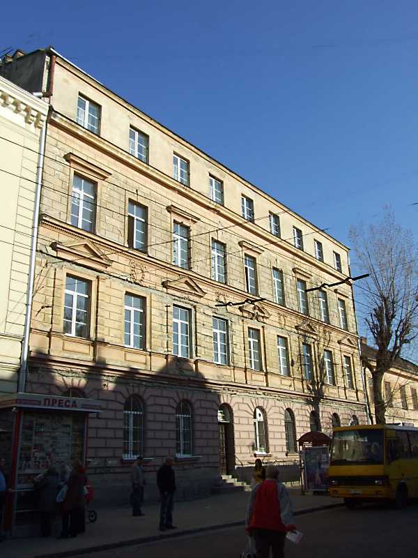 Житловий будинок (№ 1?)Розмір зображення: 600:800 піксел Оцей будинок на початку вул. Шота Руставелі не позначений номером на жодному плані і не має таблички на фасаді. Летючий голандець і годі. 18 квітня 2013 р. Фото М.І.Жарких. |