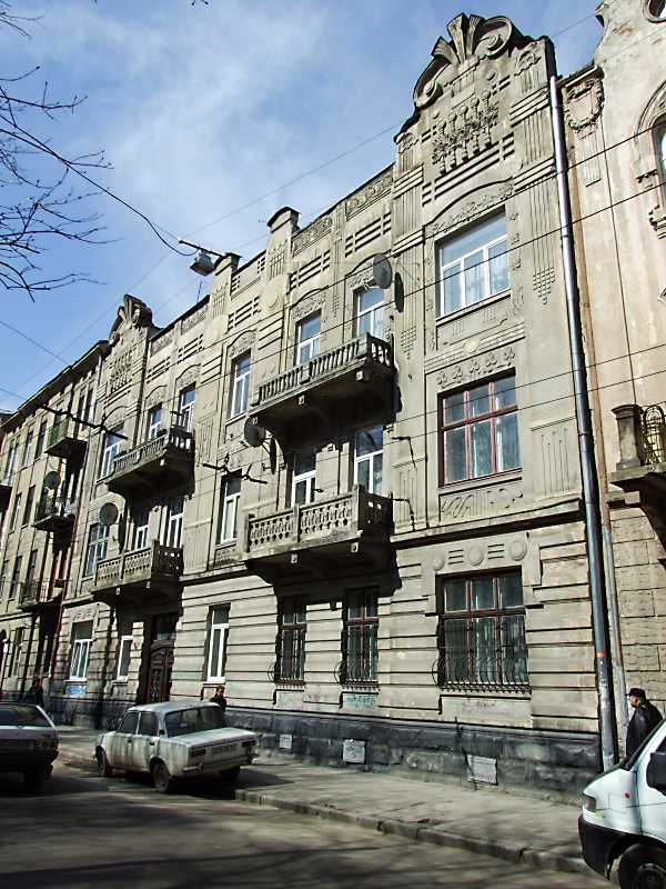 Житловий будинок (№ 34) Розмір зображення: 600:800 піксел 16 квітня 2013 р. Фото М.І.Жарких. Вкладені елементи 2013 р. Сецесійний фронтон 2013 р. Сецесійне вікно 3-го поверху 2013 р. Сецесійне вікно 2-го поверху 2013 р. Сецесійний вхід 2013 р. Сецесійне вікно 1-го поверху 2013 р. Загальний вигляд