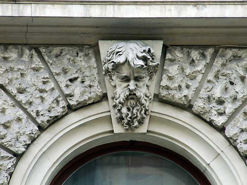 Маскарон вікна 1-го поверху Розмір зображення: 800:600 піксел 7 квітня 2012 р. Фото М.І.Жарких. Попередня сторінка | Вище | Наступна сторінка