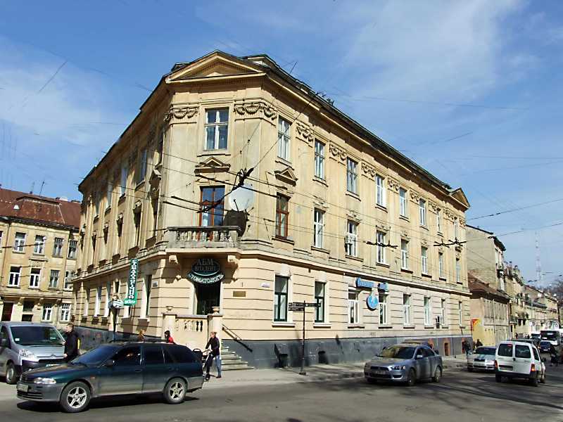 2013 р. Загальний виглядРозмір зображення: 800:600 піксел Ліворуч – вулиця Костомарова, праворуч – вулиця Шота Руставелі. 16 квітня 2013 р. Фото М.І.Жарких. |