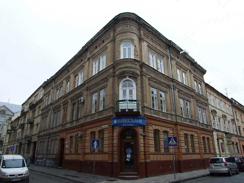 Будинок (№ 23)Розмір зображення: 800:600 піксел 7 квітня 2012 р. Фото М.І.Жарких. Ліворуч – вул. Томашівського, праворуч – вул. Чайковського. |