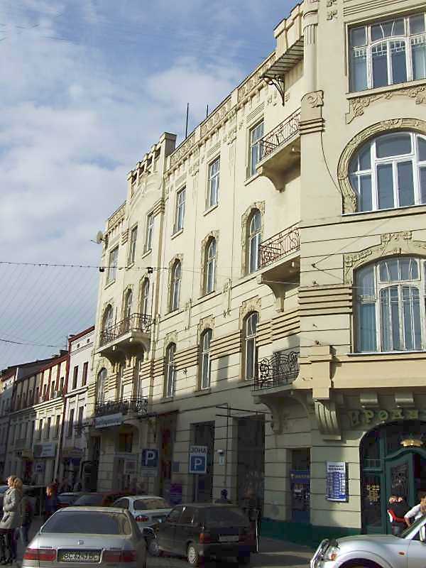 2008 р. Фасад по вул. Чайковського Розмір зображення: 600:800 піксел 16 жовтня 2008 р. Фото М.І.Жарких. Попередня сторінка | Вище | Наступна сторінка