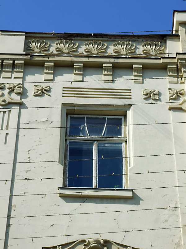Сецесійне вікно 4-го поверху Розмір зображення: 600:800 піксел 16 квітня 2013 р. Фото М.І.Жарких. Попередня сторінка | Вище | Наступна сторінка