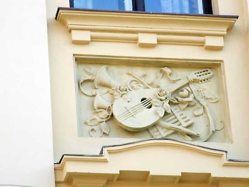Барельєф з мандоліною та свиреллю Розмір зображення: 800:600 піксел 16 квітня 2013 р. Фото М.І.Жарких. Попередня сторінка | Вище | Наступна сторінка
