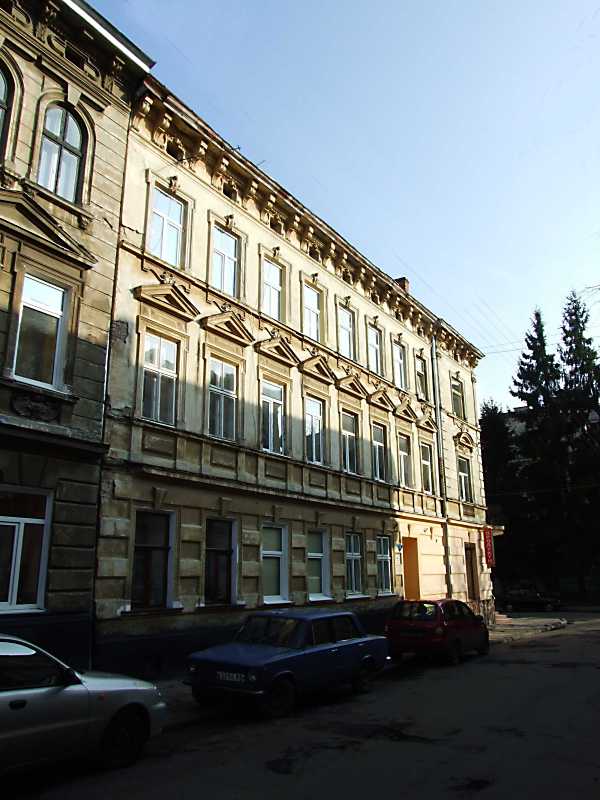 Житловий будинок (№ 15)Розмір зображення: 600:800 піксел Загальний вигляд з боку вул. Сковороди. 7 квітня 2012 р. Фото М.І.Жарких. |