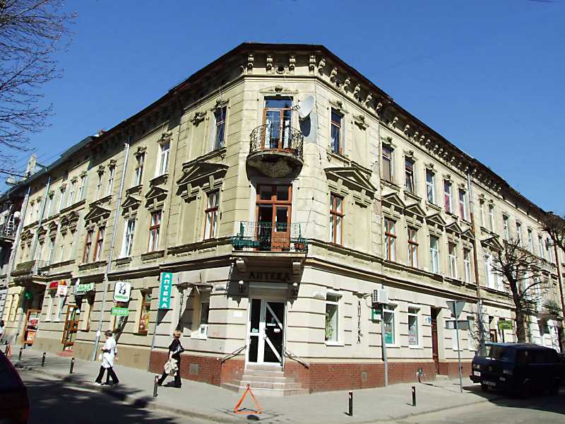 2013 р. Загальний виглядРозмір зображення: 800:600 піксел Ліворуч – вулиця Сковороди, праворуч – вулиця Некрасова. 19 квітня 2013 р. Фото М.І.Жарких. |