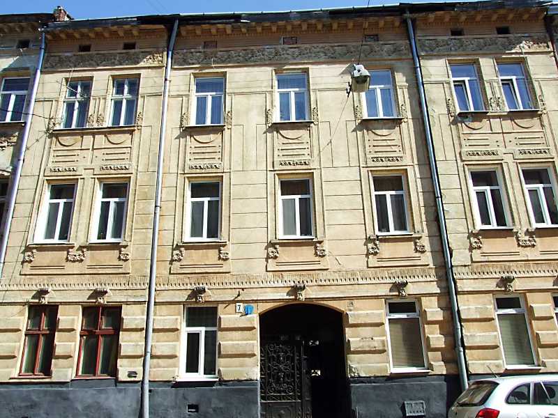 2013 р. Головний фасад Розмір зображення: 800:600 піксел 18 квітня 2013 р. Фото М.І.Жарких. Вкладені елементи Сецесійне вікно 2-го поверху