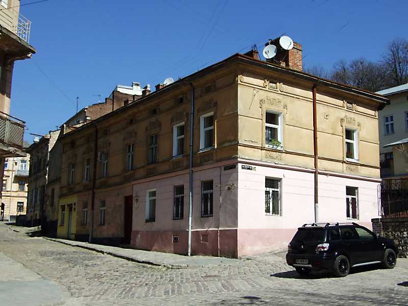 Житловий будинок (№ 2)Розмір зображення: 800:600 піксел Ліворуч – вулиця Смерекова, праворуч – вулиця Підгірна. 18 квітня 2013 р. Фото М.І.Жарких. |