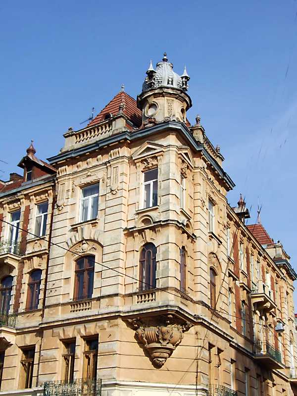 Наріжна частина Розмір зображення: 600:800 піксел 4 квітня 2012 р. Фото М.І.Жарких. Вкладені елементи Еркер, 4-й поверх Еркер, 3-й поверх