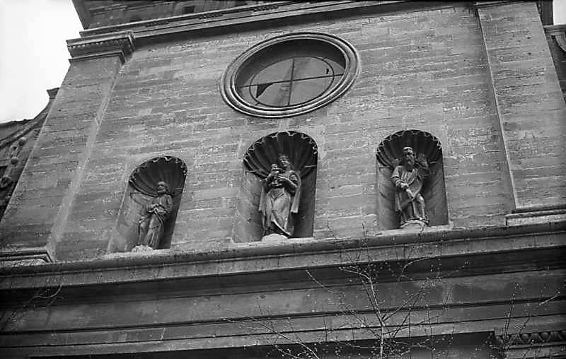 Середній ярус головного фасаду. Вигляд з позиції С3Розмір зображення: 800:508 піксел 1976 р. 23 квітня. Фото М.І.Жарких. Негатека, № A111-12. |