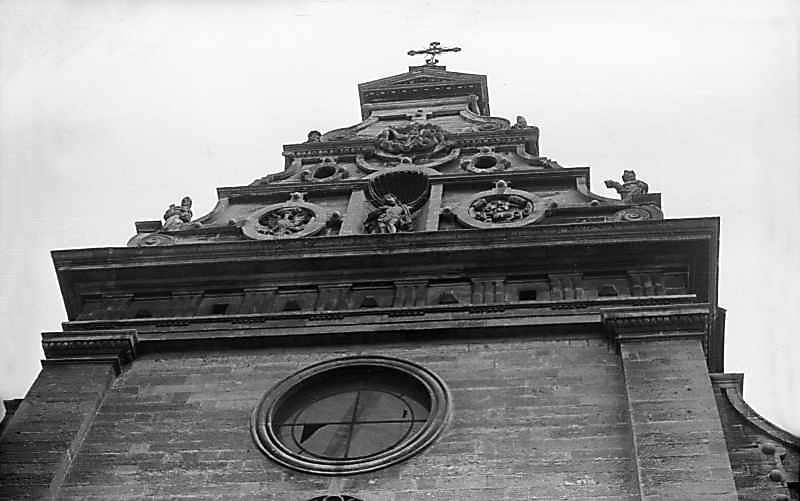 Верхня частина головного фасаду. Вигляд з позиції С3Розмір зображення: 800:501 піксел 1976 р. 23 квітня. Фото М.І.Жарких. Негатека, № A111-13. |