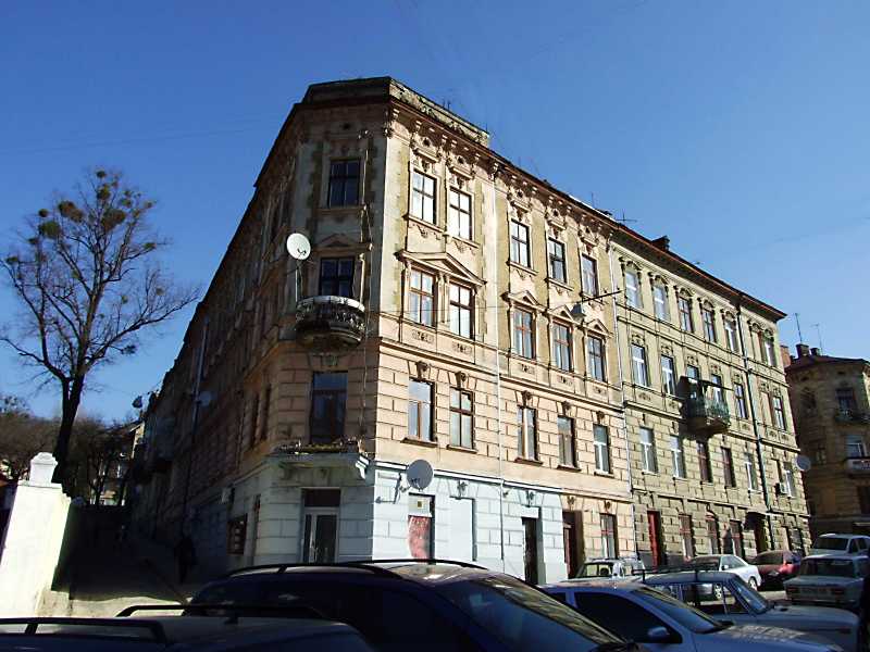 Ліворуч – будинок во пул. Малій, 1, праворуч – по вул. Садовського, 3а. 18 квітня 2013 р. Фото М.І.Жарких.
