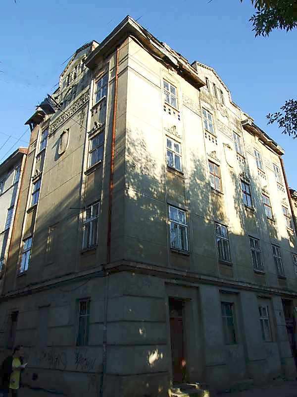 2007 р. Загальний вигляд Розмір зображення: 600:800 піксел 14 вересня 2007 р. Фото М.І.Жарких. Вкладені елементи Фрагмент фасаду з датою “1912” Акротерій 4-го поверху