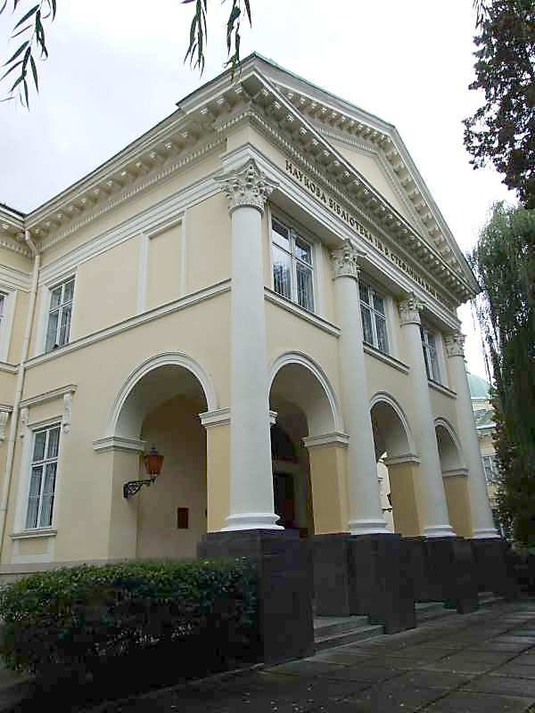 2007 р. Центральна частина головного фасадуРозмір зображення: 600:800 піксел Вигляд зі сходу. 15 вересня 2007 р. Фото М.І.Жарких. |