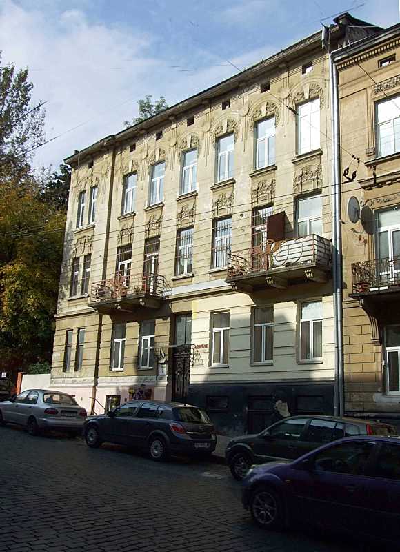 2019 р. Загальний вигляд Розмір зображення: 580:800 піксел Фото М.І.Жарких, 4 жовтня 2019 р. Вкладені елементи Сецесійне вікно 3-го поверху Сецесійне вікно 2-го поверху